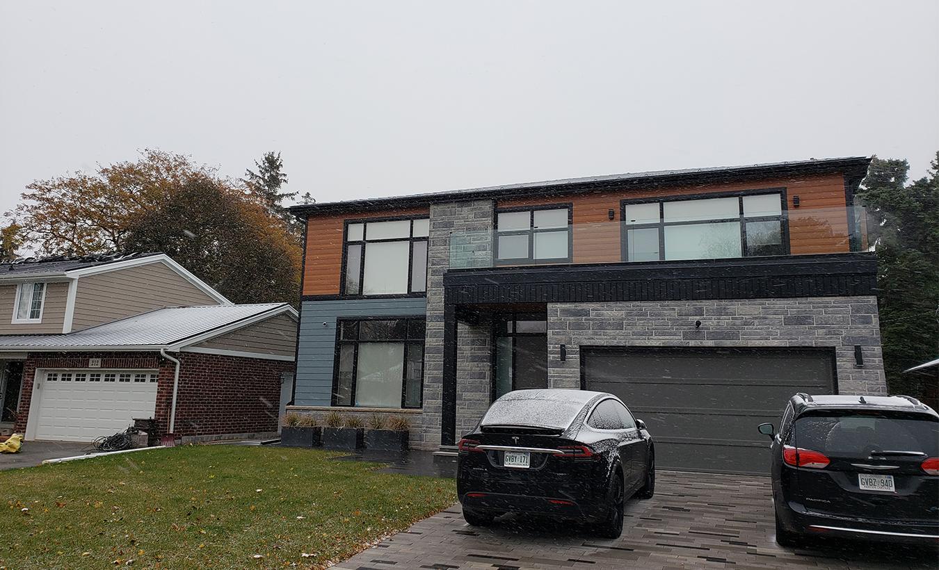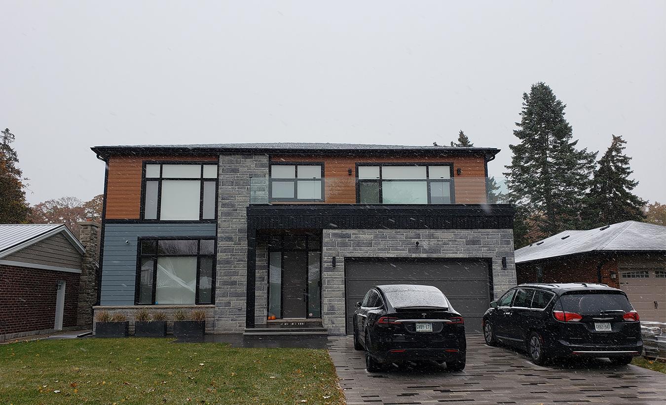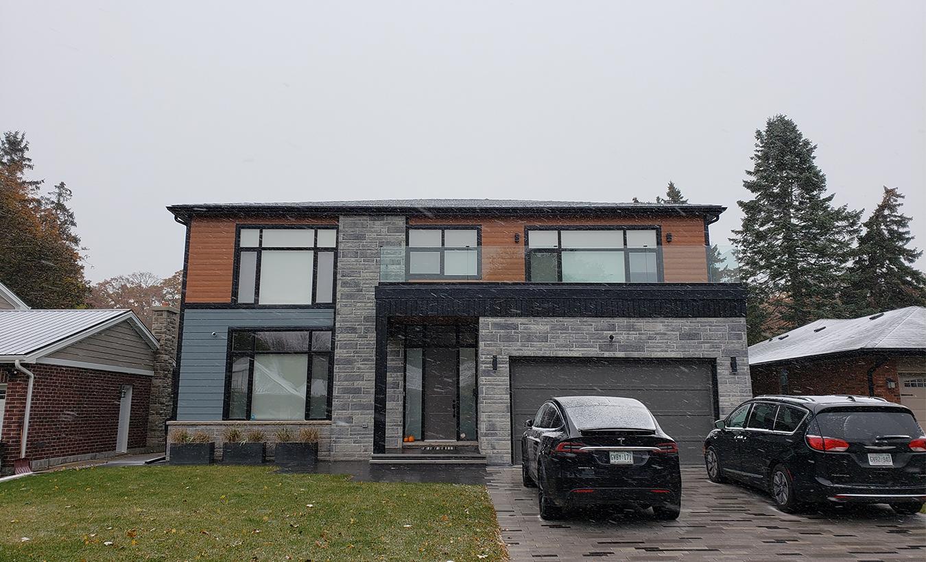 New modern custom home on the west end of Burlington, ON. Client wanted a simple and elegant house with the use of stone and metal siding.