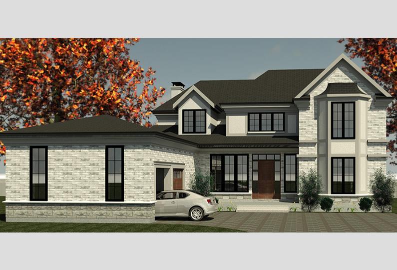 New residence in Waterdown. This traditional stone covered house is exactly what the client envisioned while working with LIMA Architects. The L-Shaped house design allows for a large porch and provides privacy for the owners. With its bold features that stand out from the street and large open to above foyer and catwalk LIMA Architects is pleased with the result and is looking forward to construction of the house in the Spring of 2018.