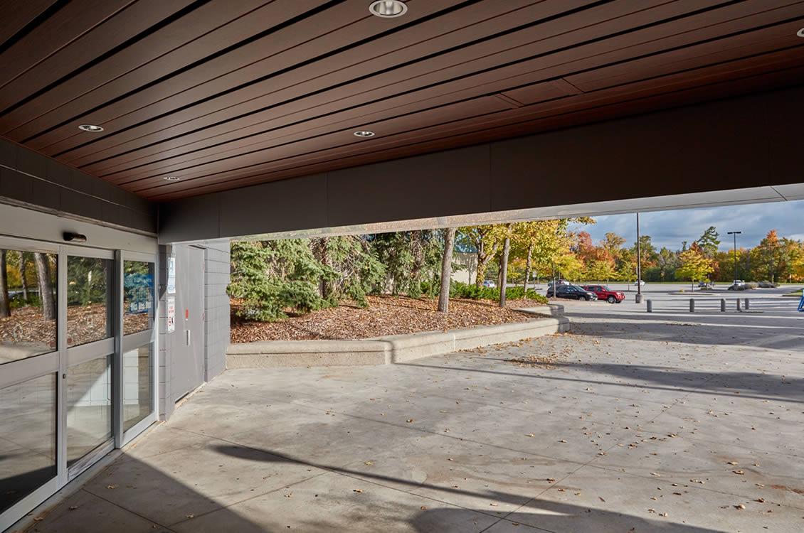 The original Mainway Recreation Centre canopy and entrance needed improvement. Lima Architects was retained by the City of Burlington to design a new canopy for that building as well as to enhance overall entrance area. The Client desire was to modernize the building curb appeal. We came up with an eye-catching design that really transformed the overall building appearance.