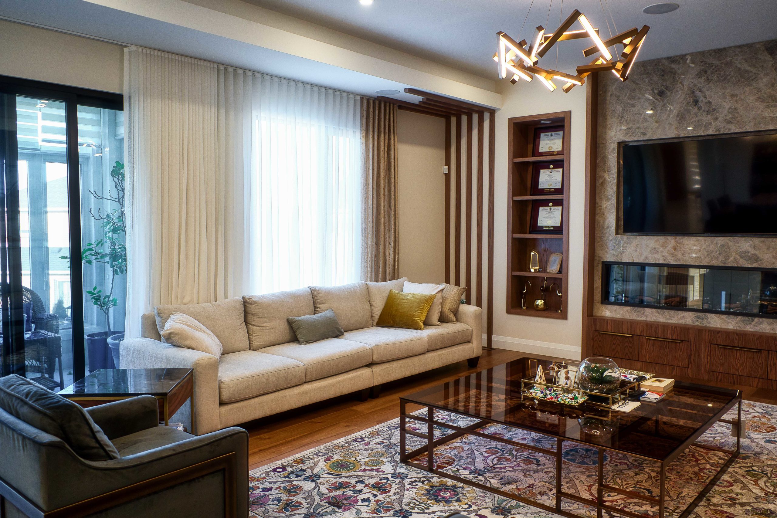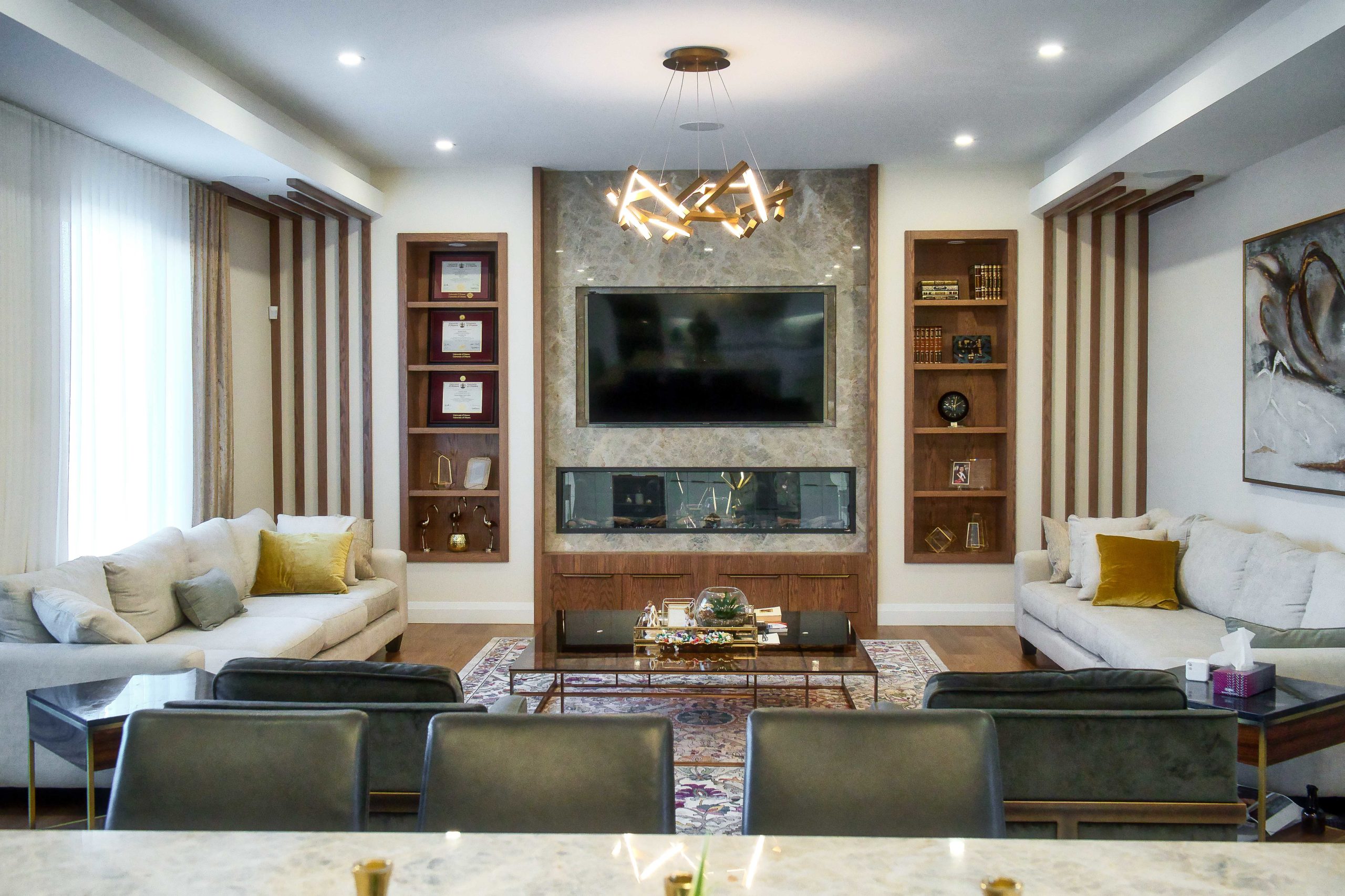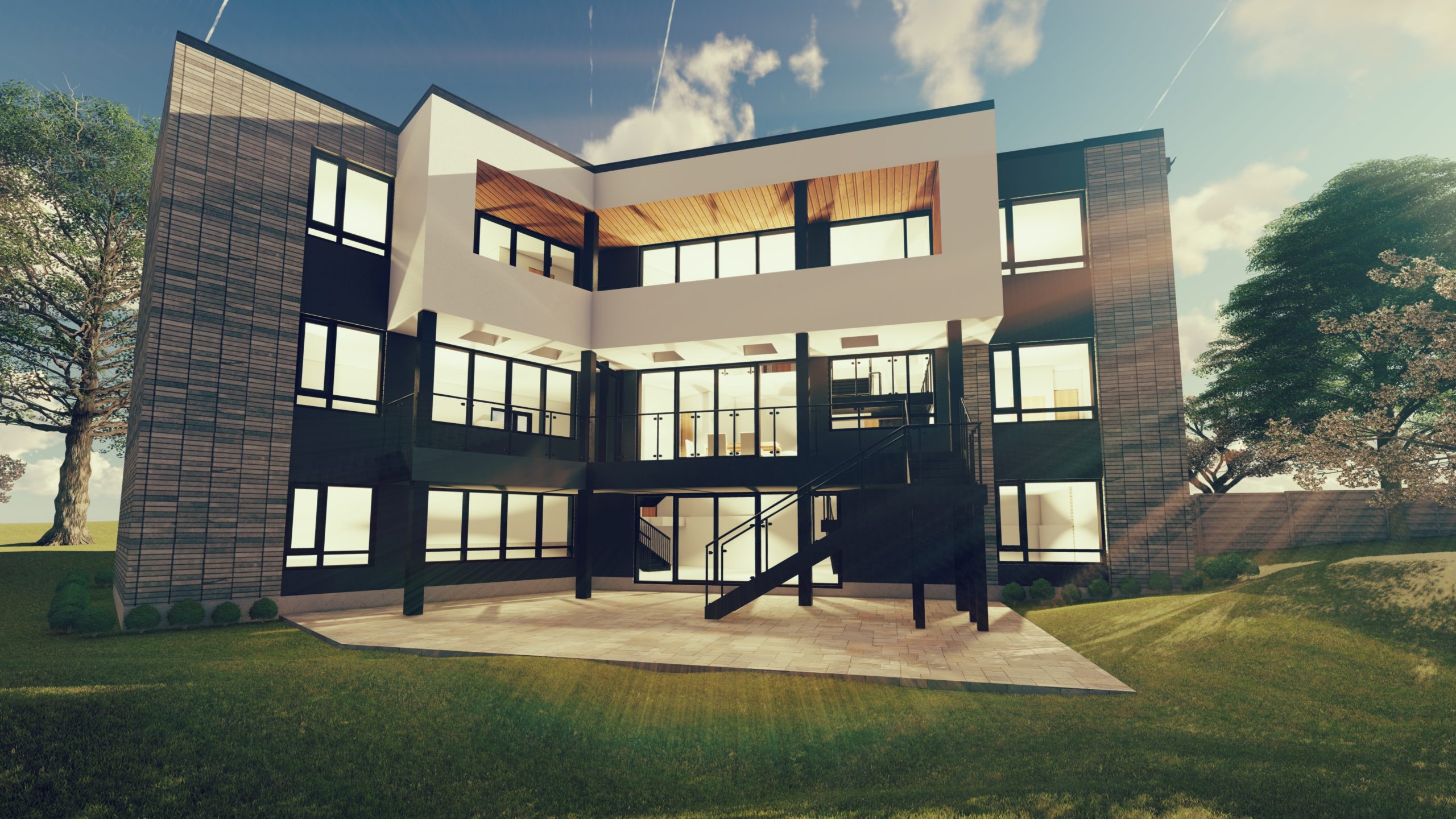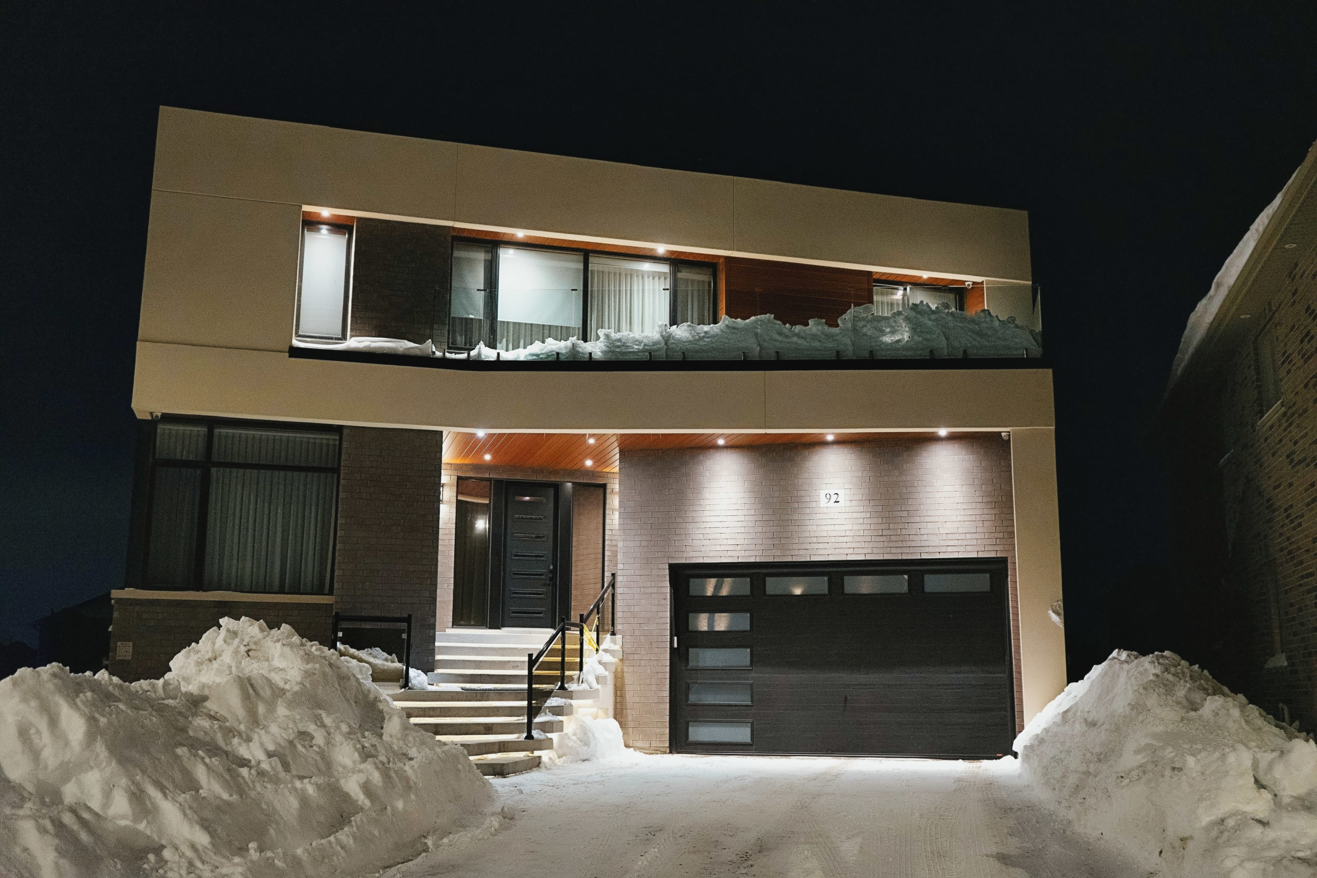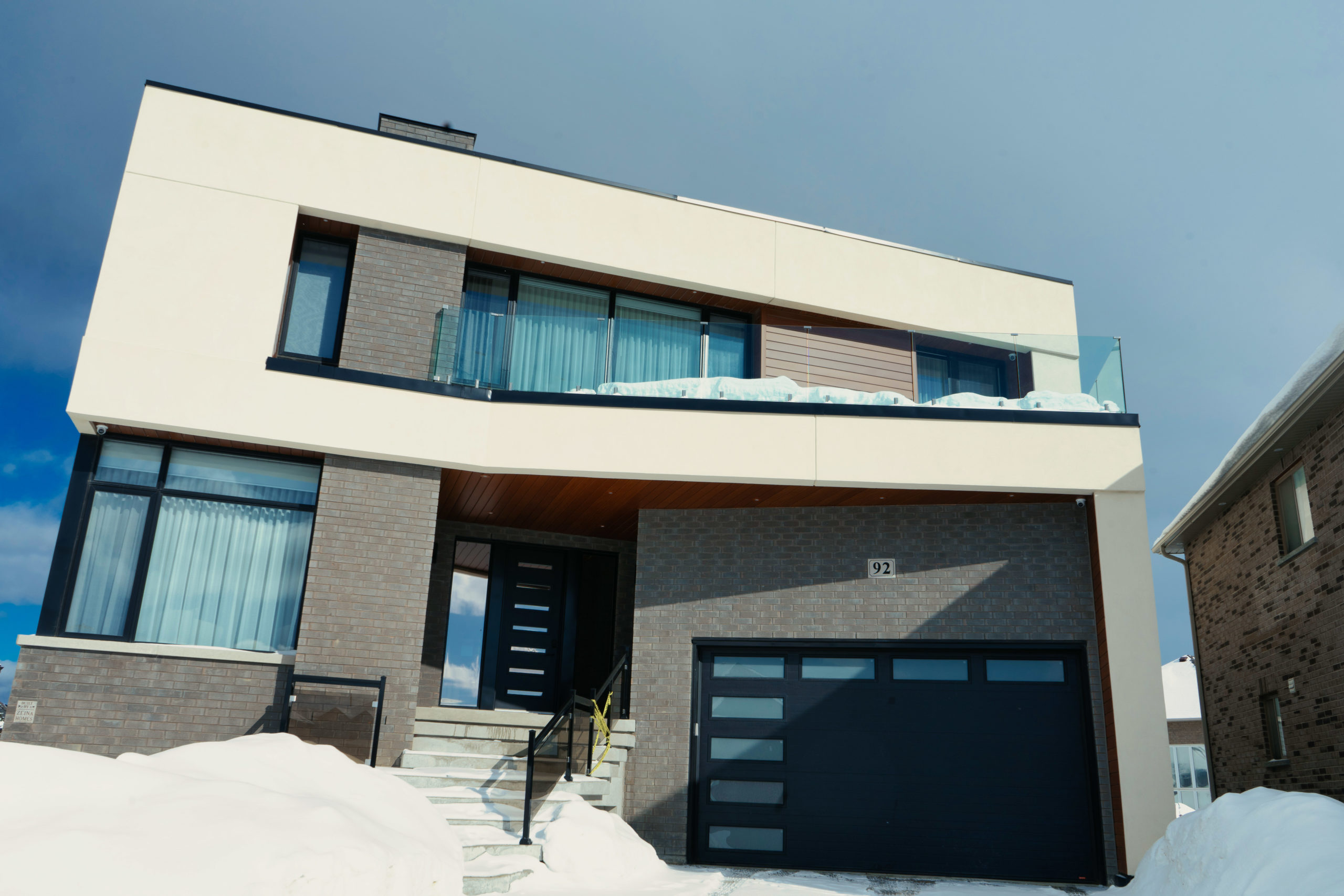 Zeina Homes is a well-established home developer, especially in the Hamilton area. Zeina retained Lima Architects to design a showcase home for one of their subdivision lots in Hamilton, ON. The intent was to make this house stand out and inspire the other upcoming houses in the surrounding lots. This breathtaking home was carefully and meticulously designed with constant input from the client. The lot has a pie shape which dictated the building massing. The large windows allow for great views of the landscaping.