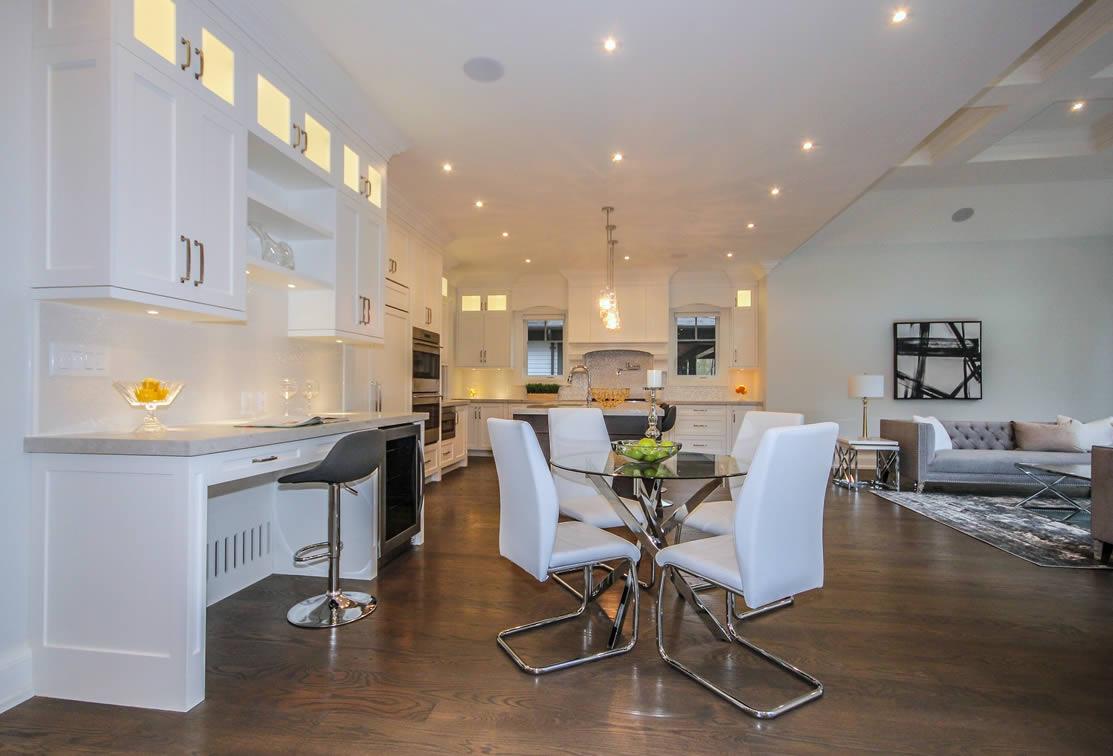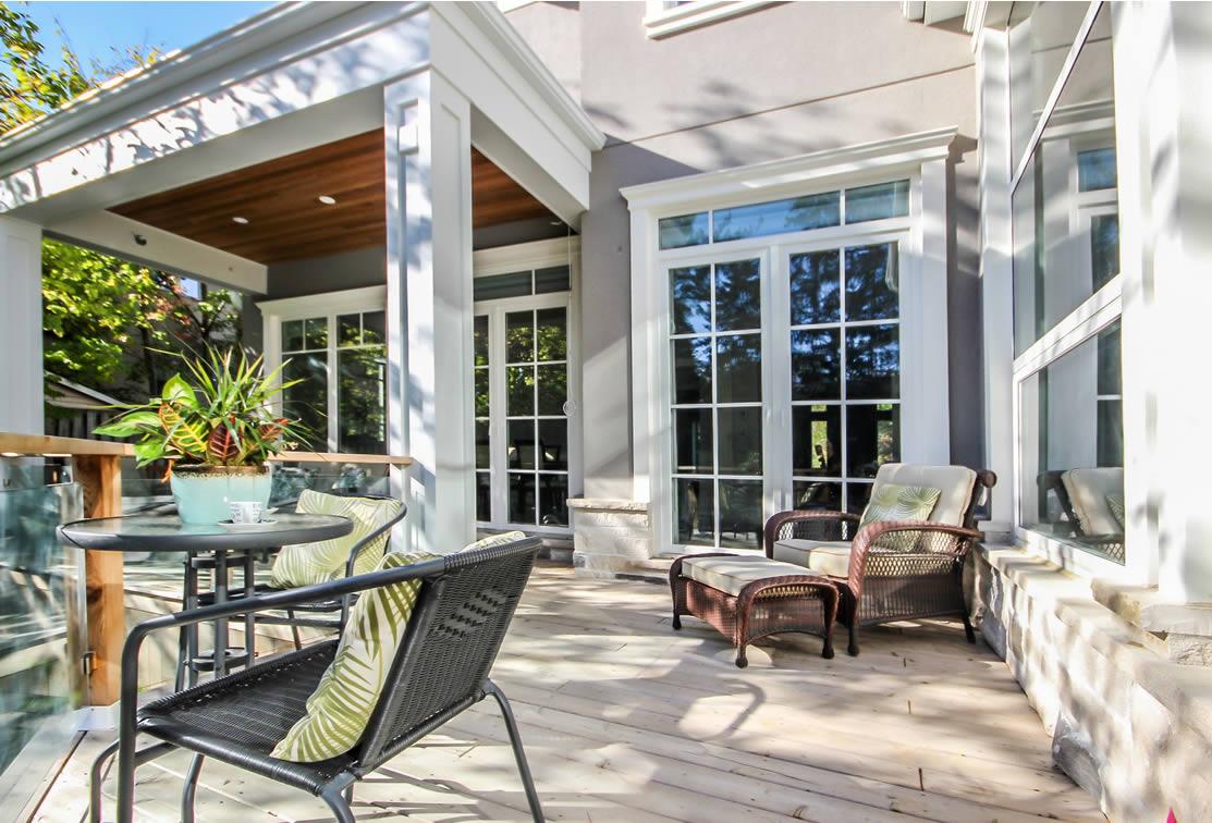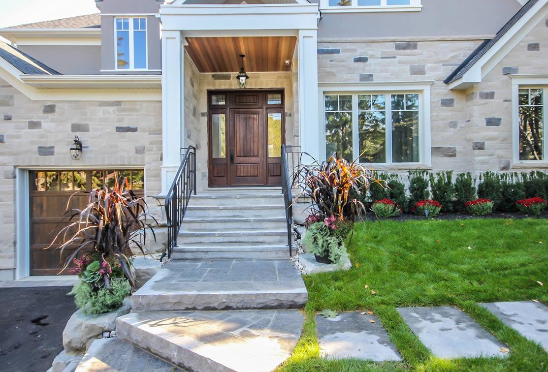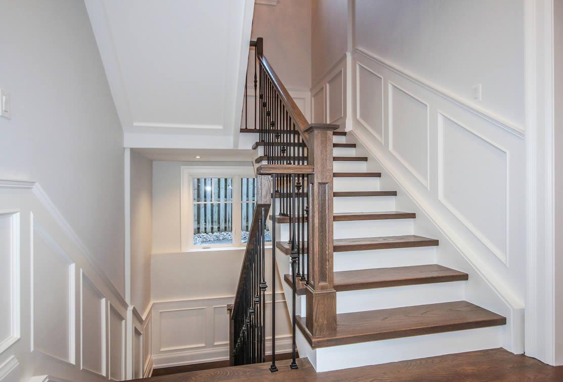 This design captures the style of this Oakville neighbourhood with elegance and proportion. The 2nd floor is “tucked” in behind the main roof so that the building height appears to be lower but this house has 10 ft ceilings on the main floor and a 9 ft ceiling on the second floor. The house sits on a two-level lot which was incorporated into the design to maximize the potential of the topography and landscaping. The interior was also well detailed, in line with the style and quality of design of the house.
