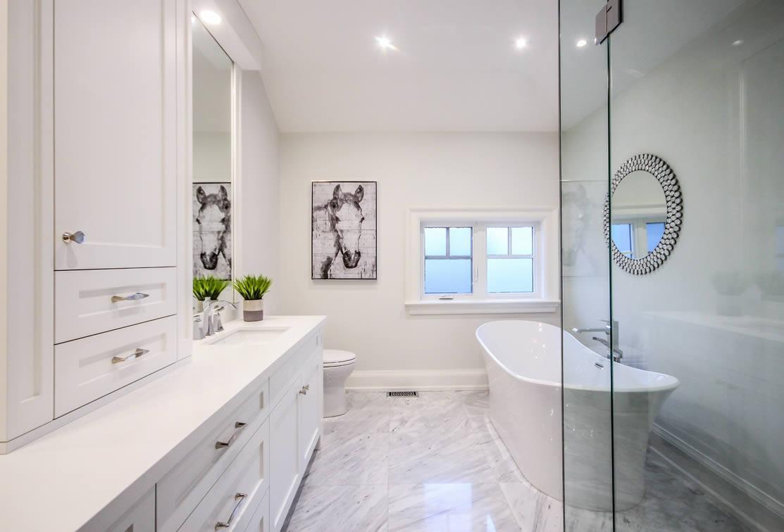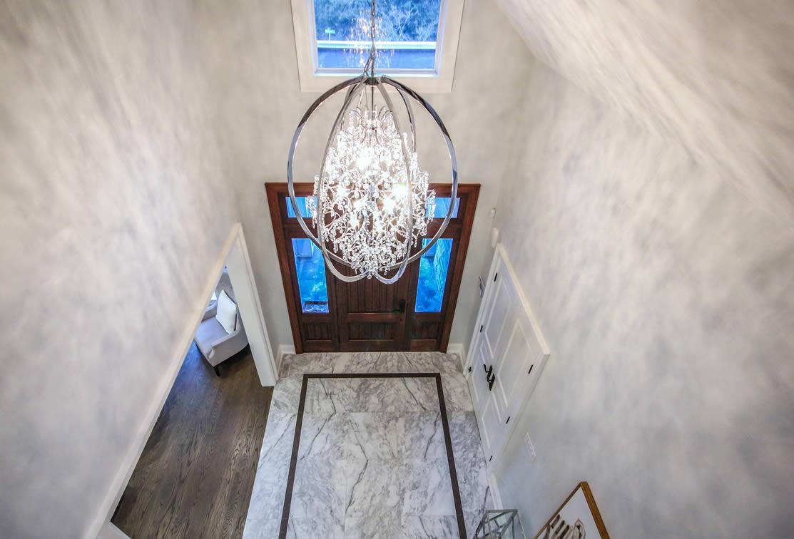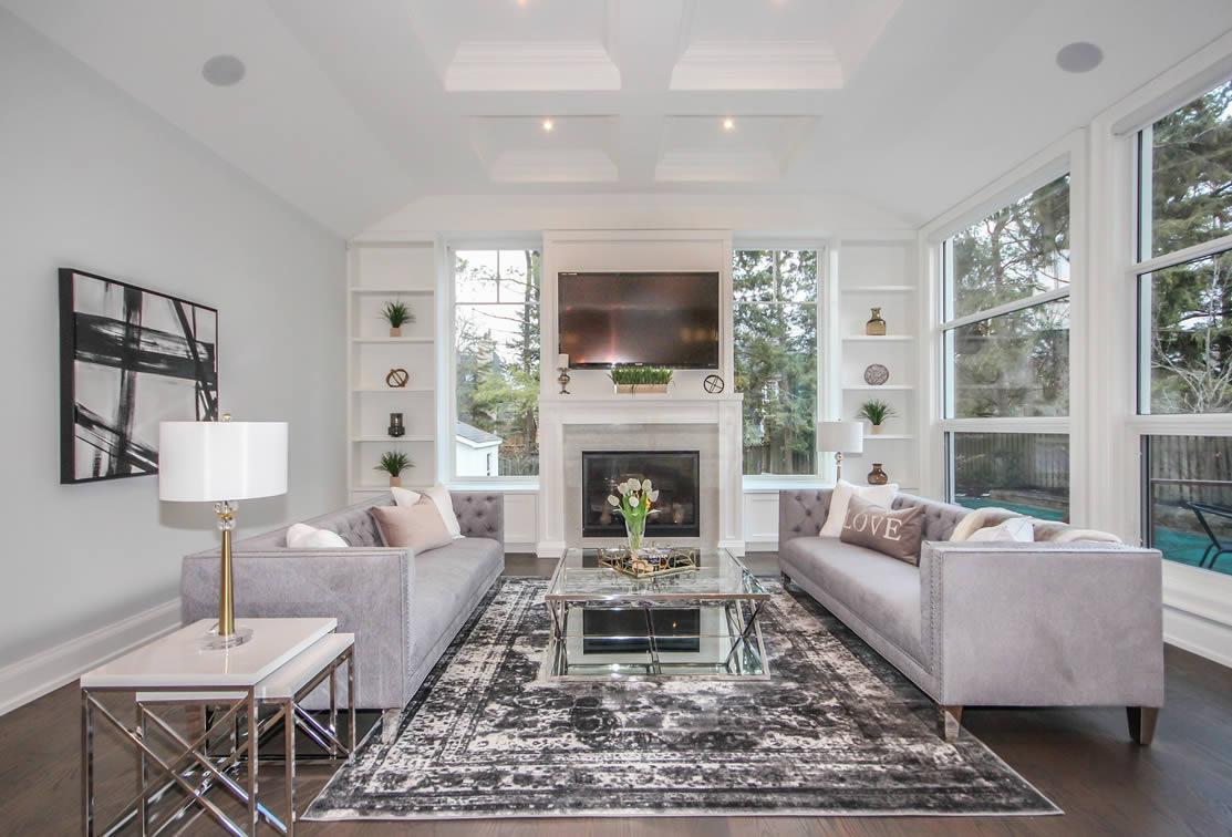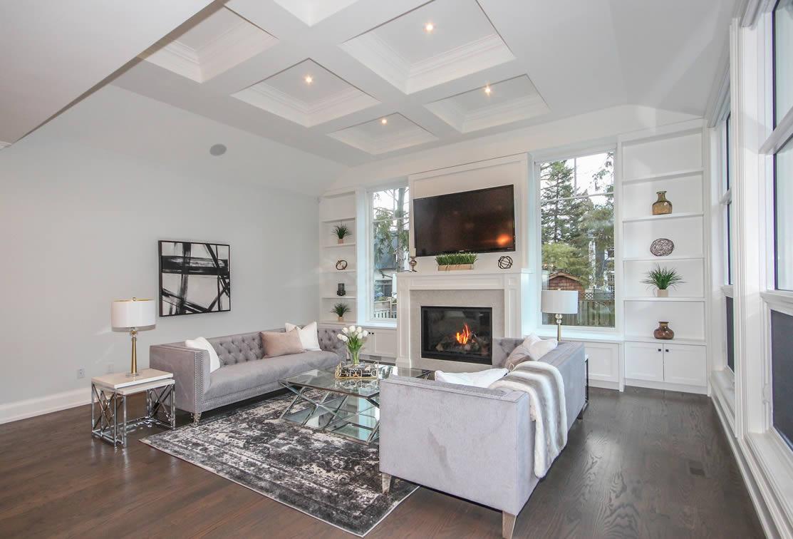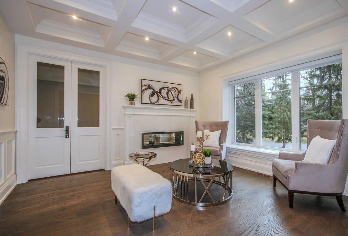 This design captures the style of this Oakville neighbourhood with elegance and proportion. The 2nd floor is “tucked” in behind the main roof so that the building height appears to be lower but this house has 10 ft ceilings on the main floor and a 9 ft ceiling on the second floor. The house sits on a two-level lot which was incorporated into the design to maximize the potential of the topography and landscaping. The interior was also well detailed, in line with the style and quality of design of the house.