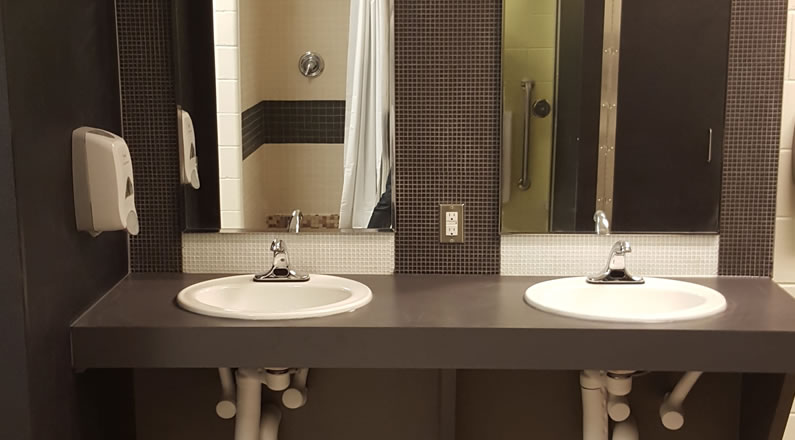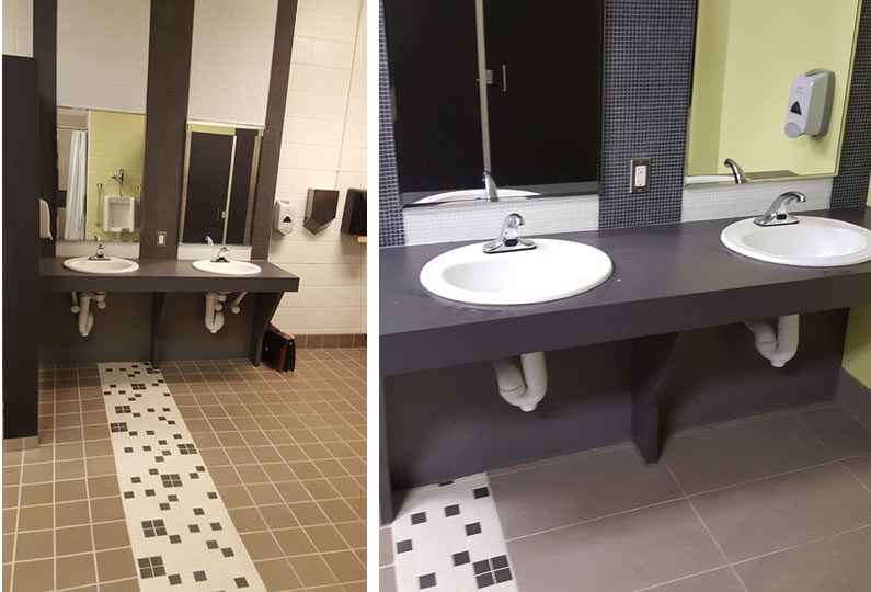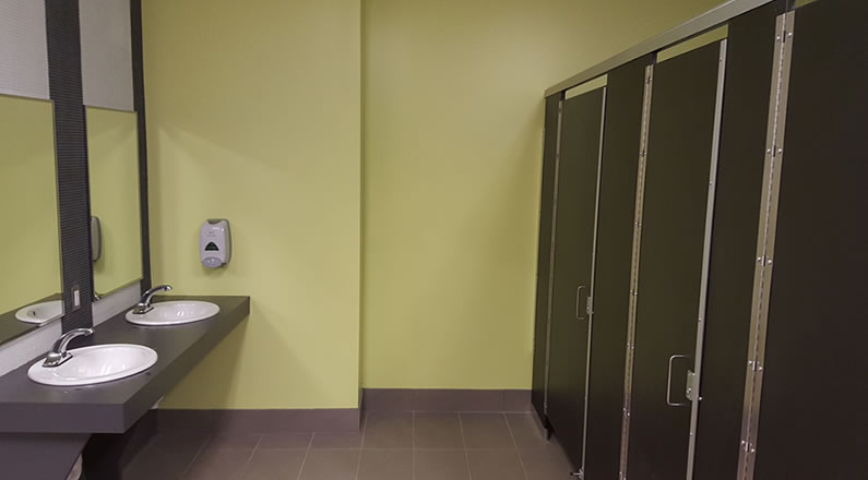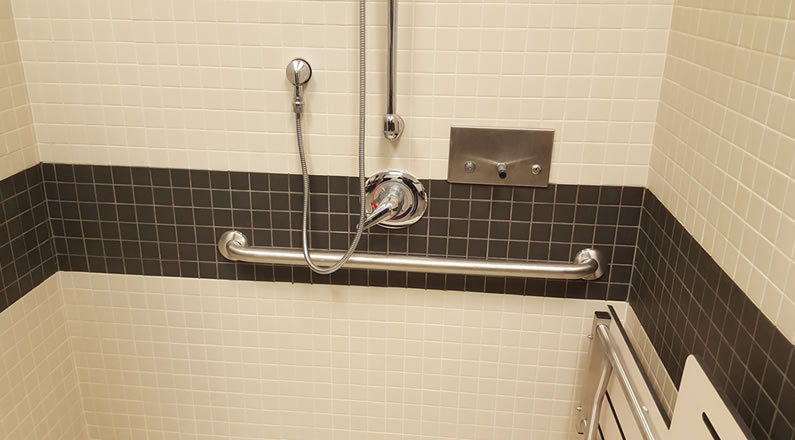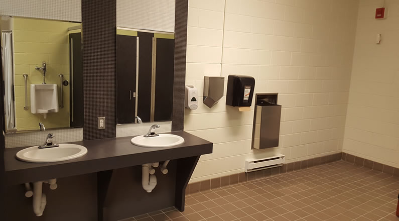 Renovation and redesign of washrooms at Brant Hills Community Centre in Burlington. This renovation/redesign was to enhance the accessibility of these washrooms as part of the ongoing efforts by the City of Burlington to improve its facilities. The use of contrasting colours further helps the visually impaired to use the facility.