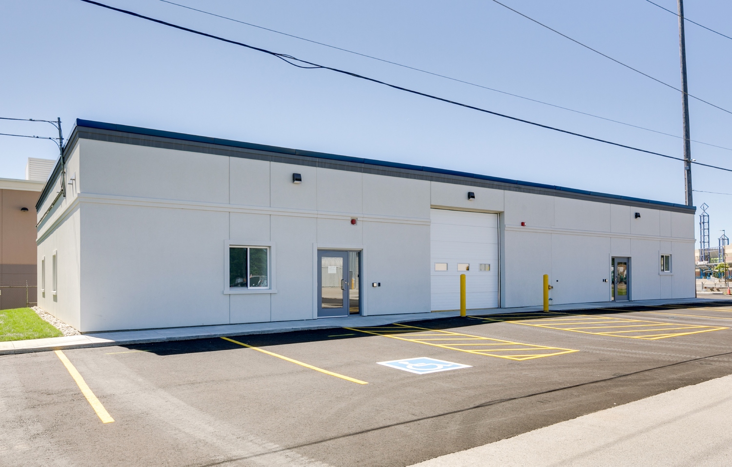 The design embraces a minimalist and industrial aesthetic, using a restrained material palette and clean geometries to express the building’s renewed purpose. The exterior façade is revitalized with crisp lines and neutral tones, projecting a professional and contemporary image that reflects Burlington Hydro’s forward-thinking operations.