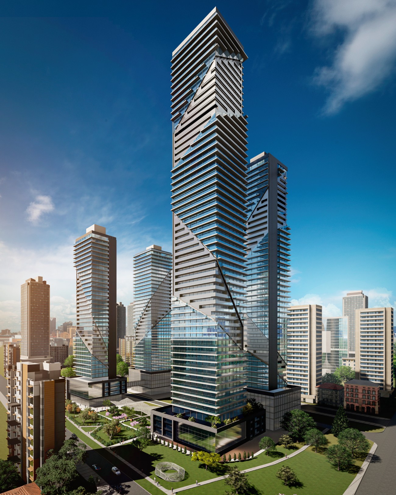 Lima Architects has been retained to design a new residential complex consisting of four condo towers situated at the corner of Queen St and Dixie Rd, Brampton. The project will be developed in three phases. Phase I entails the construction of two 40 storey towers located on the south side; Phase II will consist of a single 56 storey tower; Phase III includes a 65-storey tower for a combined 2,648 units.